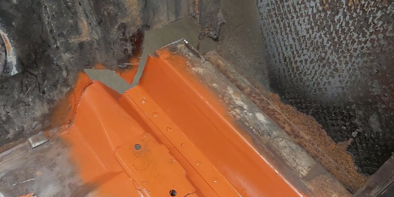 Jag började slipa med fingerslipen på insidan av sidoplåtens ned...